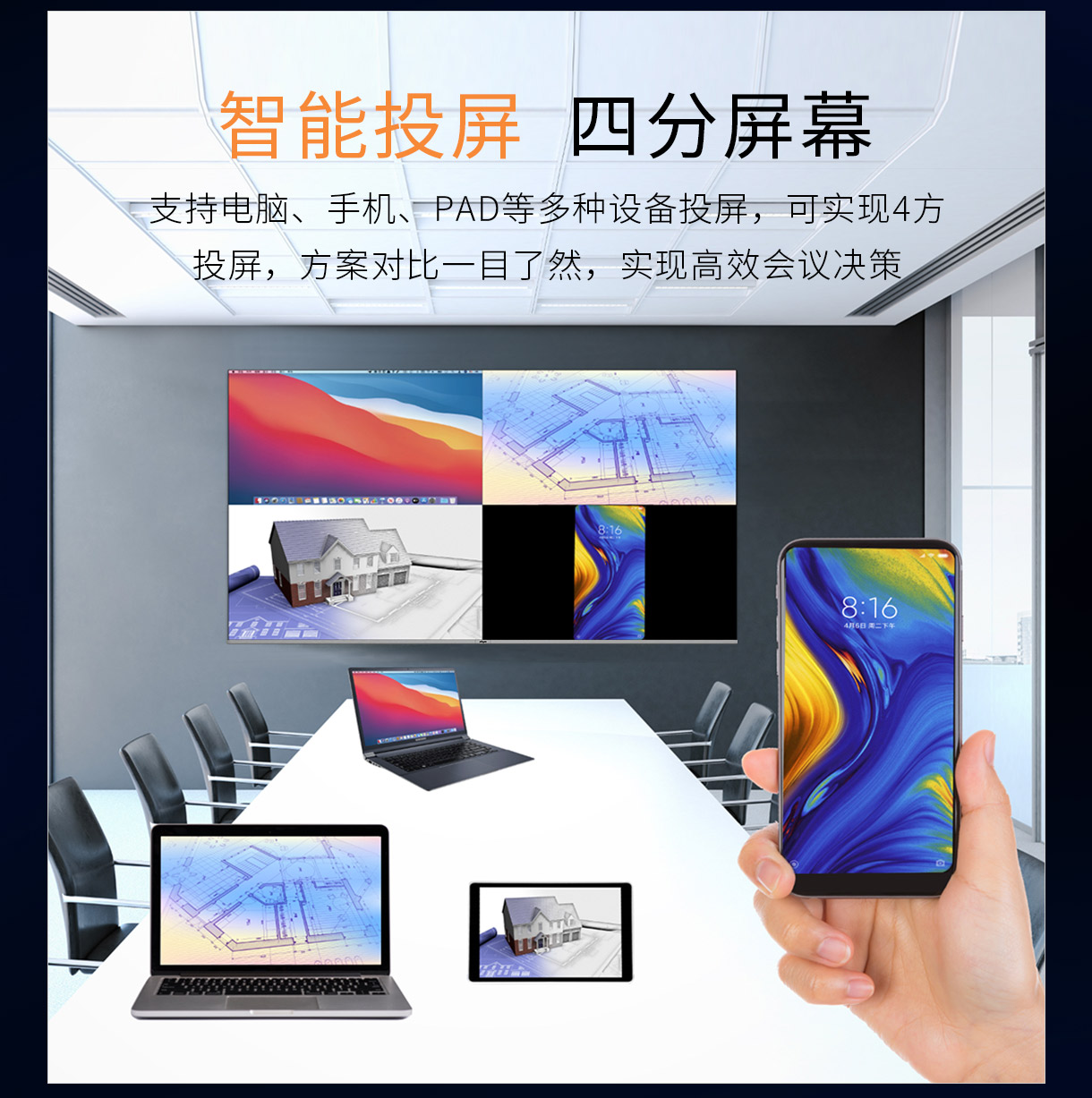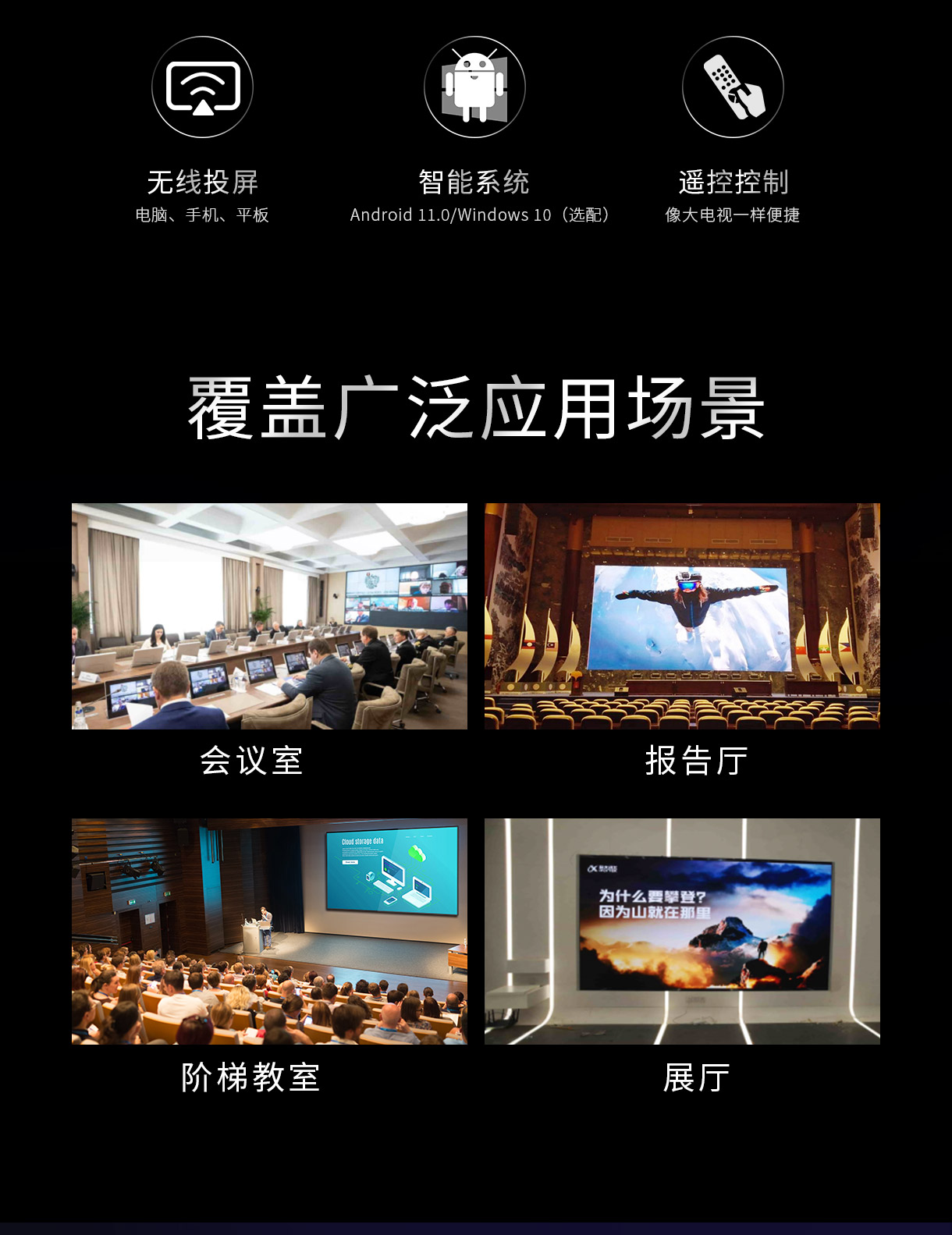 适用于会议室,教室,展览等场景